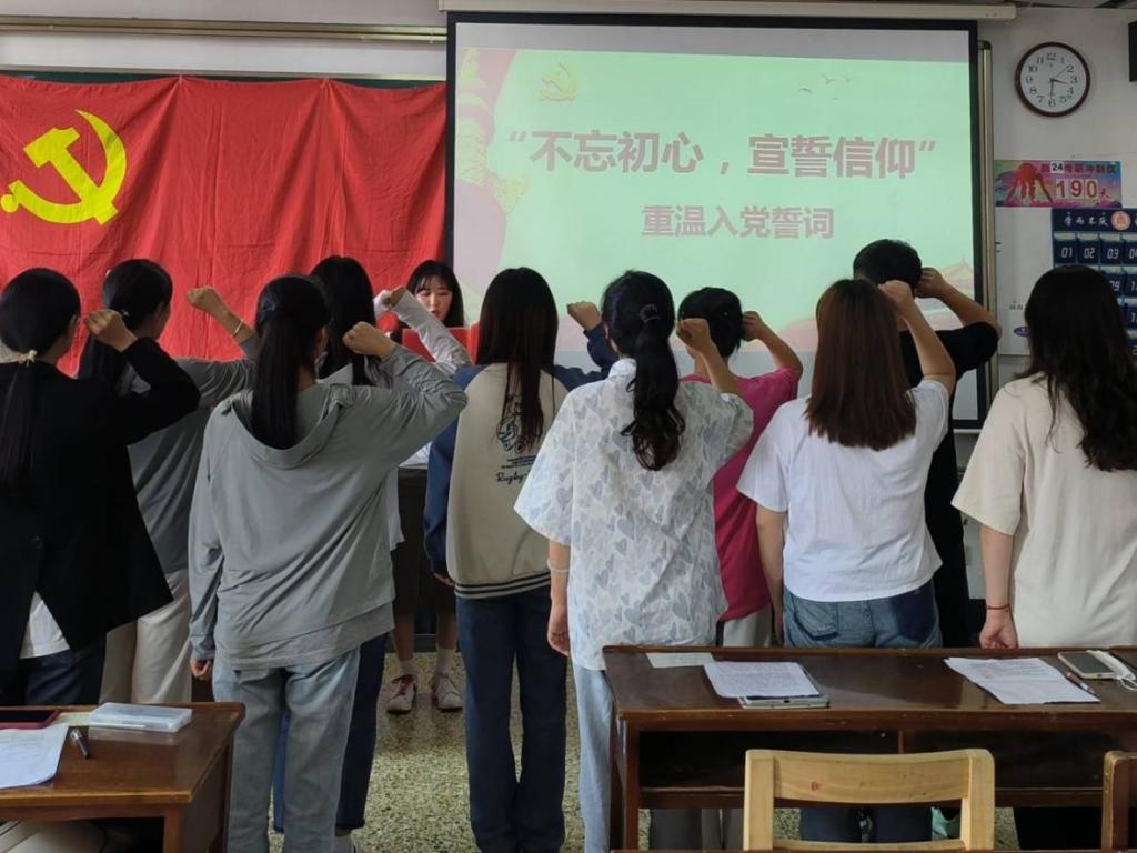 会议伊始,董晓宇针对2023上半年工作的开展情况做简要的述职报告,对2023上半年党支部工作中的不足进行分析、总结,并针对性的提出整改措施。希望全体党员能够端正态度、坚守初心、实事求是,发挥党员的先锋模范作用,积极为学院的发展贡献力量。随后,本科生第二党支部党员按照顺序依次从个人作风、学习情况以及工作开展进行自我批评、自我剖析。董晓宇肯定了各位党员近期的学习情况和学习成果,要求党员在学习中锤炼党性修养。最后,为引导广大学生党员坚定理想信念,支部开展“不忘初心,宣誓信仰”重温入党誓词活动,全体面对党旗庄严宣誓,重温对党忠诚的誓言和为党的事业奋斗终生的初心。