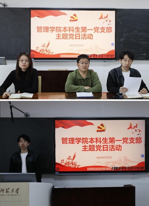 浏览量: 更新日期:2024-05-09(通讯员:孟维越 摄影:路常浩)为重温党的光辉历史,继承和发扬党的光荣传统和优良作风,5月8日,海角社区 本科生第一党支部于JC607举办主题党日活动,活动由本科生第一党支部书记袁铭泽主持,学院党委委员刘金发、2023级辅导员李静琪出席本次活动,本科生第一党支部全体党员参加。