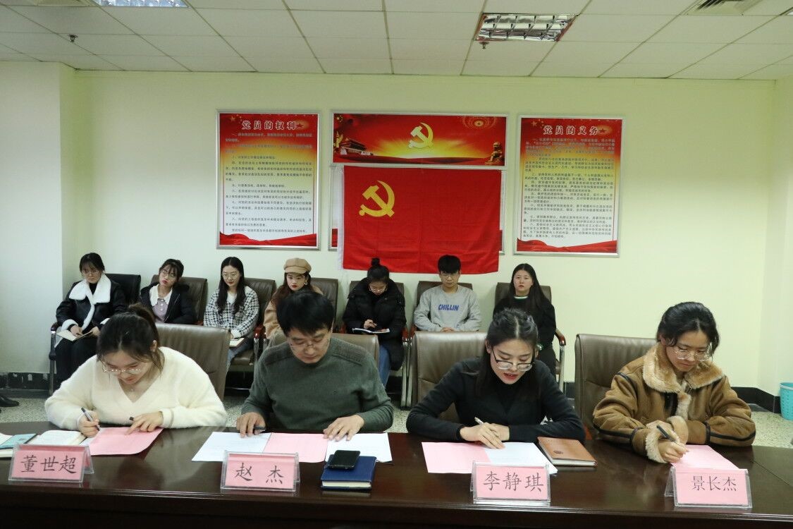 12月11日,海角社区 本科生党支部于JC819召开预备党员接收大会,讨论叶楠、于雅文等32名发展对象按期转为预备党员的事宜。海角社区 本科生党支部书记赵杰、组织委员李静琪、宣传委员董世超、本科生党员景长杰同志以及全体发展对象参加会议,会议由赵杰主持。