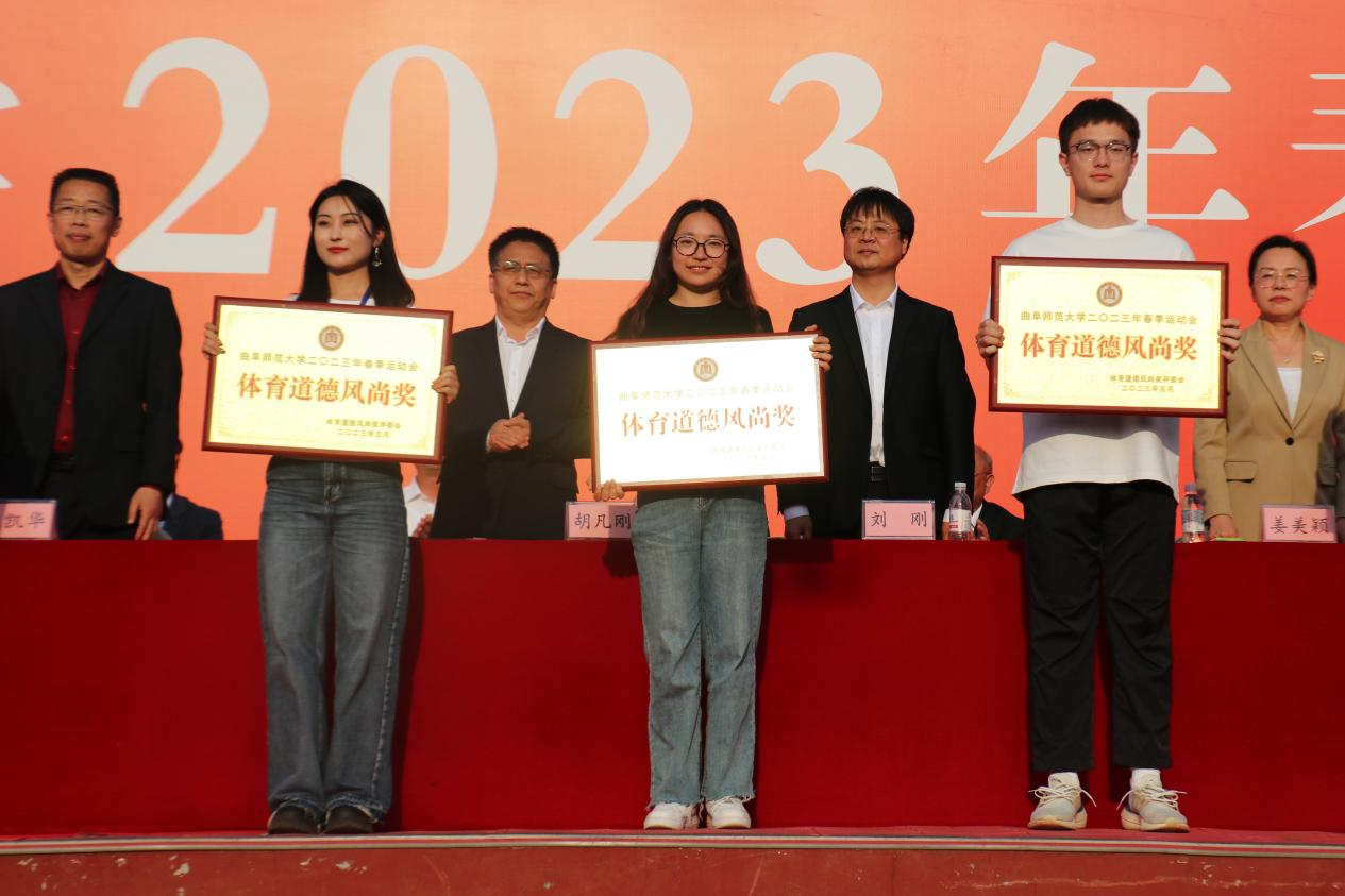 稼穑蓬勃,青春熠熠。首先,海角社区 教职工足球队与海角社区 女子足球队一场精彩绝伦的友谊赛燃动全场,同时标志着闭幕式正式开始。各学院运动员入场后,由总裁判长张海涛宣布运动会的比赛成绩、2023年体育先进单位和先进个人。海角社区 在本次学生组比赛中勇进七强,同时获得“体育先进单位”称号,其中八名同学获“体育先进个人”称号。随后,由学生工作处处长姜美颖宣布体育道德风尚奖结果,海角社区 等六个学院在获奖之列。闭幕式最后,党委常委、副校长胡凡刚致辞,他代表学校对运动会取得的优异成绩表示热烈祝贺,对全体工作人员表达由衷的感谢。胡凡刚指出,此次运动会是对学校体育教学成果的全面检阅,彰显了曲园学子锐意进取、踔厉分发的精神魄力,抒写了新时代的青春赞歌。在全场热烈的掌声中,2023年春季运动会落下帷幕。