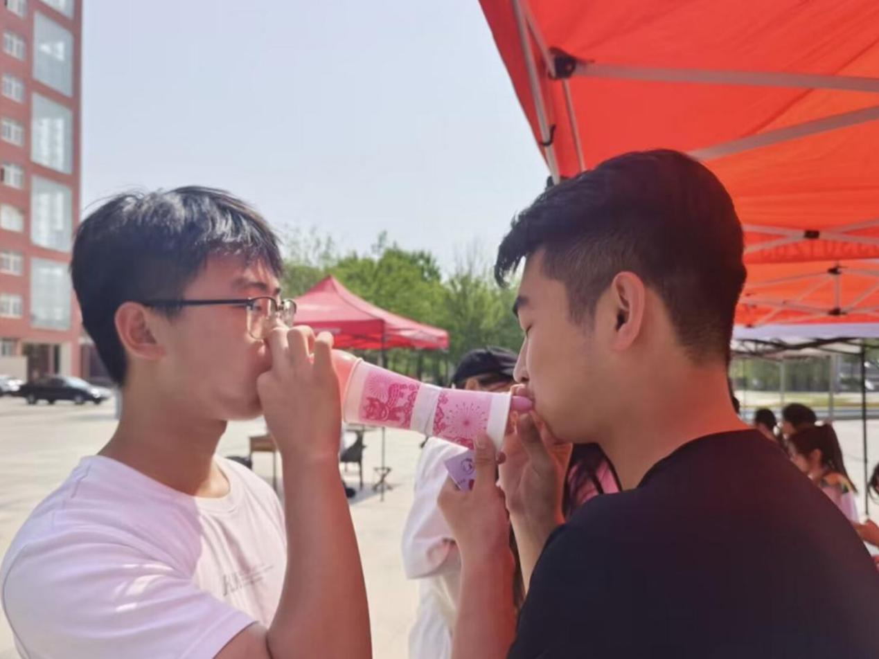 本次心理游园活动集知识性、趣味性、活动性于一体,通过身体运动、嬉戏娱乐等方式进行心理减压,引领学生们在参与、体验和分享中宣泄压力。此次活动海角社区 主要负责气球传杯环节,活动准备阶段,心理部干事布置好活动道具并进行活动任务分配。游戏中,团队成员铆足干劲,热情高涨,全身心投入。最终,同学们也凭借超强的默契和凝聚力,出色的完成传递任务。活动现场,同学们热情高涨,青春洋溢,欢声不断。
