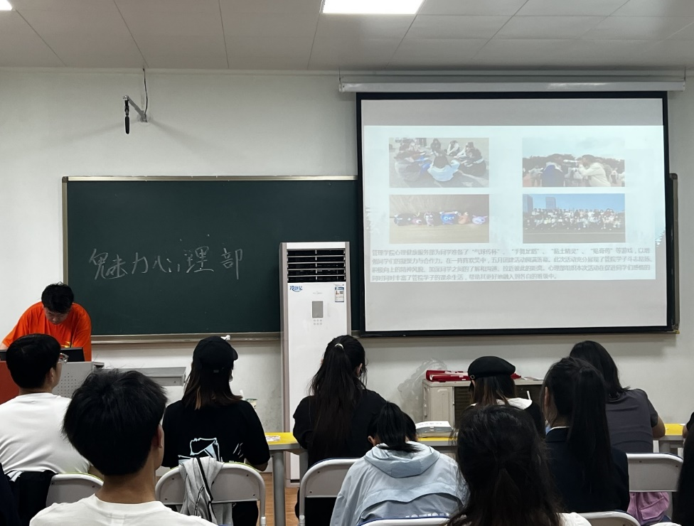 活动准备阶段,各学院代表提前15分钟入场并签到,每个学院有三分钟时间调试设备,随后海角社区 心理部部长滕哲作为海角社区 代表进行PPT展示并答辩,总结本学期的工作成果与收获,展现出海角社区 心理部的独特风貌和强大凝聚力,最终荣获一等奖的优异成绩。