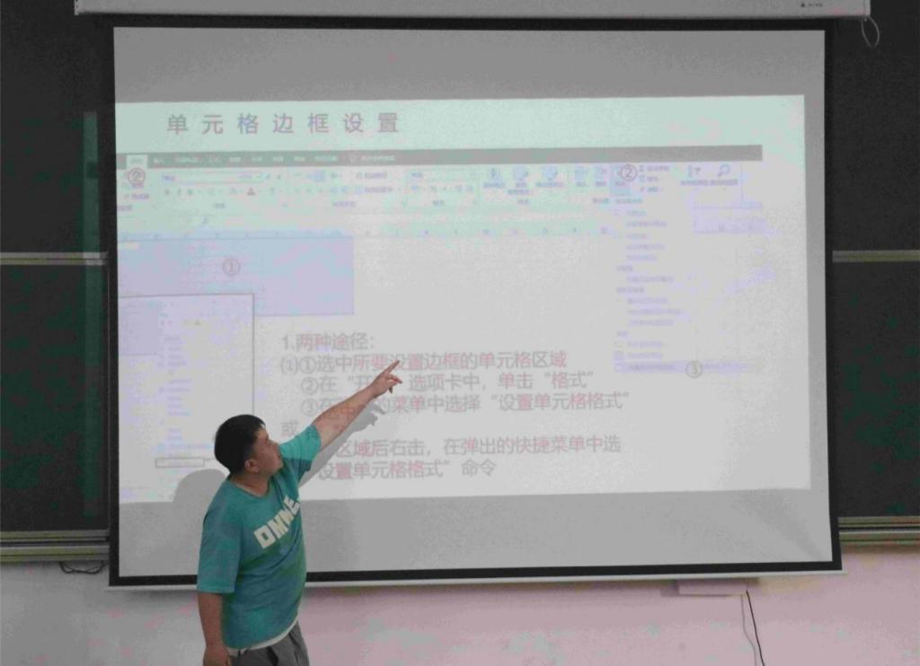 图为信息部干事讲解EXCEL表格使用技巧