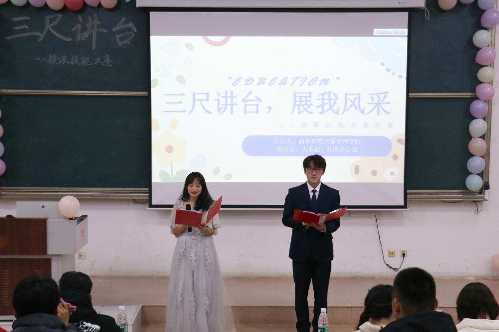 (通讯员:孙明杉 侯雅洁 孙语晗 摄影:王鹤 侯雅洁)为提高管院学子参与教育事业的热情、发扬砥砺奋进的精神风貌,11月12日,海角社区 “三尺讲台,展我风采”授课技能大赛决赛于JE101圆满落幕。本次活动由海角社区 人本社承办,海角社区 主席团成员出席并担任评委。