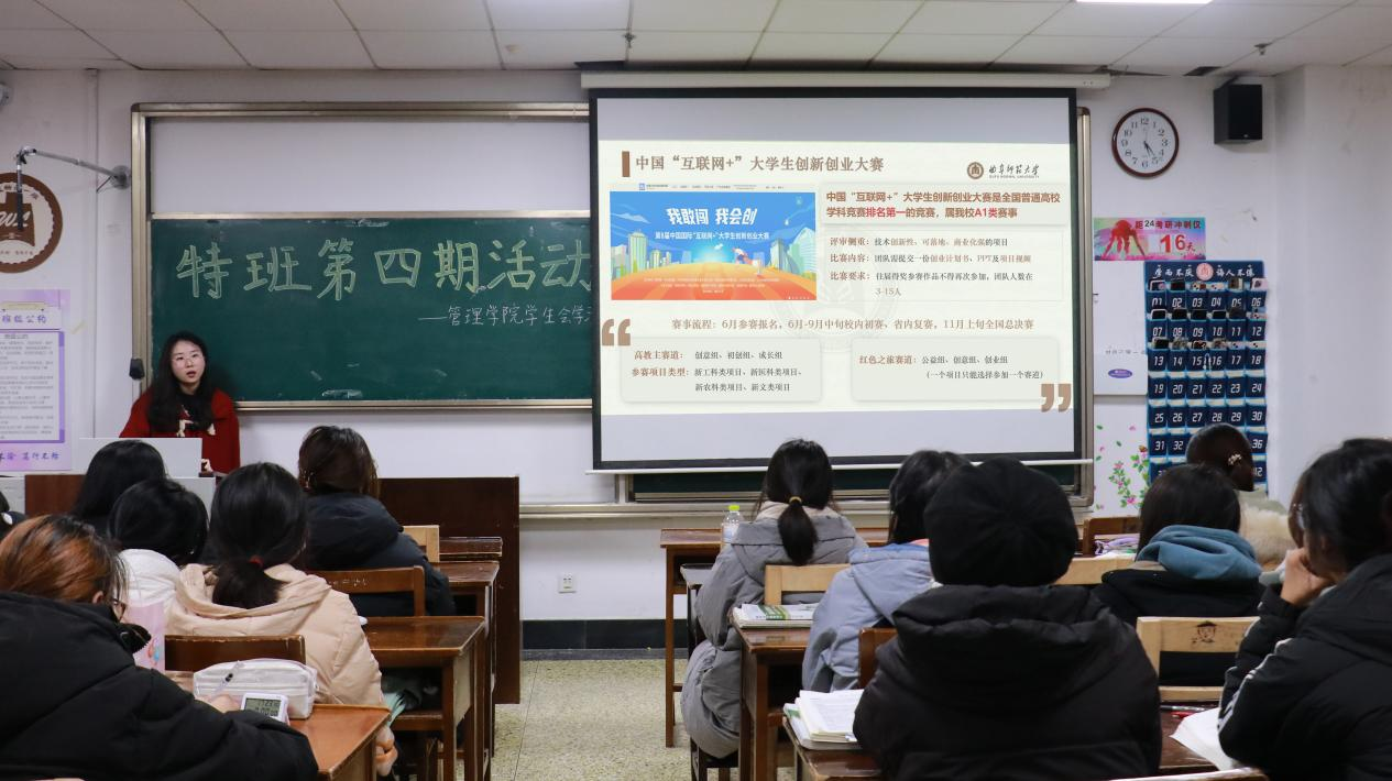 此次特班培训,何妮娜就各类高水平竞赛的报名方式和具体流程,各赛道及组别的报名要求等进行详细讲解,为特班成员明确了各类赛事的参赛侧重点;随后,她以学校优秀国奖获奖作品“憨兜成才”的项目策划书和答辩PPT制作为范例,深入剖析了PPT制作过程中需要关注的要点,同时,她以项目书框架错误示范为导入,向特班同学清晰明了地介绍了项目书的正确书写方式;最后,她从个人经验出发,分享了在不依赖模板的情况下制作出新颖清晰的PPT的技巧,在自由交流环节,特班成员提出自己的疑问并由何妮娜进行答疑解惑。本次活动的顺利举办,提高了特班成员在竞赛分析、项目计划书制作和PPT制作方面的能力,为其未来的竞赛参与之路提供了有力的支持。