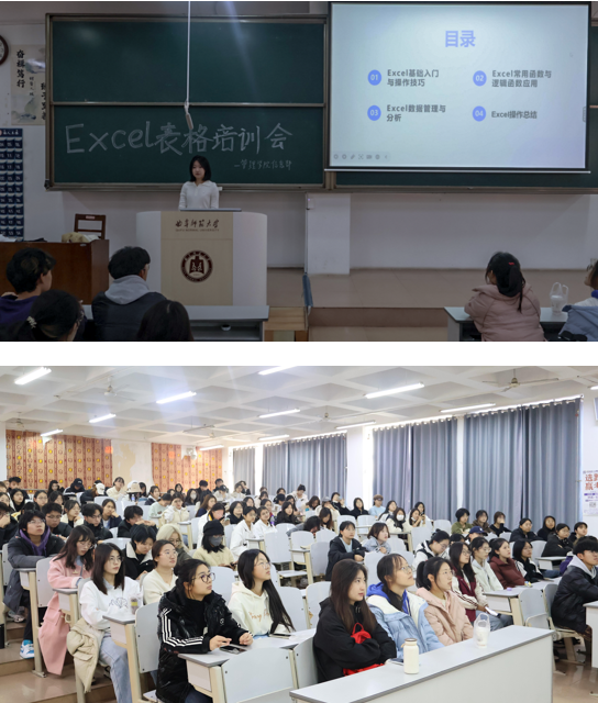 本次培训会采用了PPT讲解与实际操作相结合的方式。首先,覃佳蓉从基本界面、菜单栏、工具栏的使用等方面对Excel的功能进行了详细讲解,并通过现场演示,向大家演示了数据排序与筛选以及如何快速创建数据透视表,加深了学生的理解和掌握;随后,王春旭详细介绍了Excel中常用的五种函数并通过案例演示;最后,主讲人就学生们的问题进行解答,鼓励学生在课后认真练习,更加熟练的掌握Excel技能。
