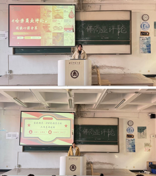 交流会上,参会学生通过PPT讲解,分享了阅读《哈佛商业评论》的心得体会;随后,参会学生灵活运用管理学知识,深入探讨了如何应用这些理念和观点来解决实际问题;最后,参会学生自行组队开展小组讨论,他们发挥自己的专业知识和创新思维,各抒己见,相互启发,深入探讨商业管理中的各种问题和解决方案;小组讨论结束后,各小组代表依次上台阐述研讨成果,他们以清晰的逻辑、自信的表达以及富有创意的观点,赢得了台下评委的高度评价。