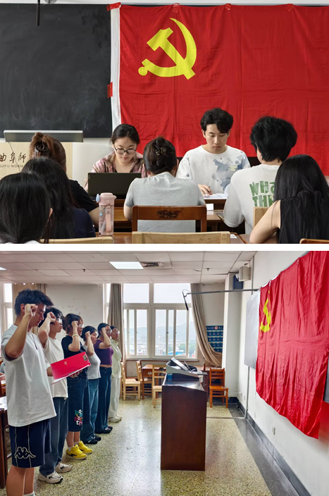 本次大会严格按照党组织接收预备党员的程序进行。会上,7名发展对象依次阐述对党的认识、入党动机、家庭情况等,坚定表达个人入党决心;随后,入党介绍人向大会宣读发展对象的培养考察情况,并就其能否入党表达了意见。在充分讨论的基础上,大会采取无记名投票方式进行表决,党支部一致认为7名发展对象符合加入中国共产党的条件,同意接收其为中共预备党员。最后,7位中共预备党员举起右拳,面对党旗庄严宣誓。