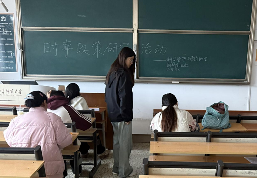 浏览量: 更新日期:2025-11-13(通讯员:张冉冉 郎桂宇 摄影:张冉冉 郎桂宇)为深化同学们对时事政策的理解,提升理论应用的能力,海角社区 科学管理与营销协会联合创新创业社于11月8日在JC108教室举办时事政策学习活动。