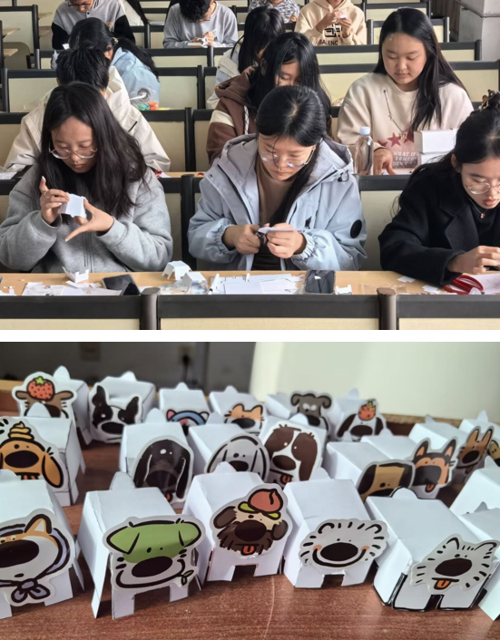 活动以“趣味互动+情感联结”为主题,旨在打造兼具创意与温度的体验场景。同学们利用废旧纸壳制作出属于自己的“小纸狗”,并为其配制专属“狗粮”,在创造与陪伴中感受温暖。随后,同学们填写领养卡片,领取爱犬们的“狗狗身份证”与“饲养手册”,沉浸式的体验为活动构建了更深层次的情感联结。活动最后,同学们与自己的作品合影留念。