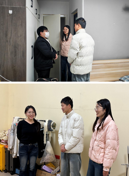 走访过程中,吕敏与外宿学生亲切交流,详细询问他们的居住条件、通勤路线及日常学习生活安排,重点查看了用电消防安全、取暖设施配备等情况,并及时提醒大家整改可能存在的安全隐患。吕敏叮嘱学生务必强化安全防范意识,保障自身安全,鼓励同学们合理分配学习与生活时间,充分利用外宿的自主空间提升学习效率。吕敏谈到,遇到生活难题和学业困惑时,要第一时间向学院和辅导员反映,学院永远是大家坚实的后盾,这也让外宿学生真切感受到了关怀与温暖。