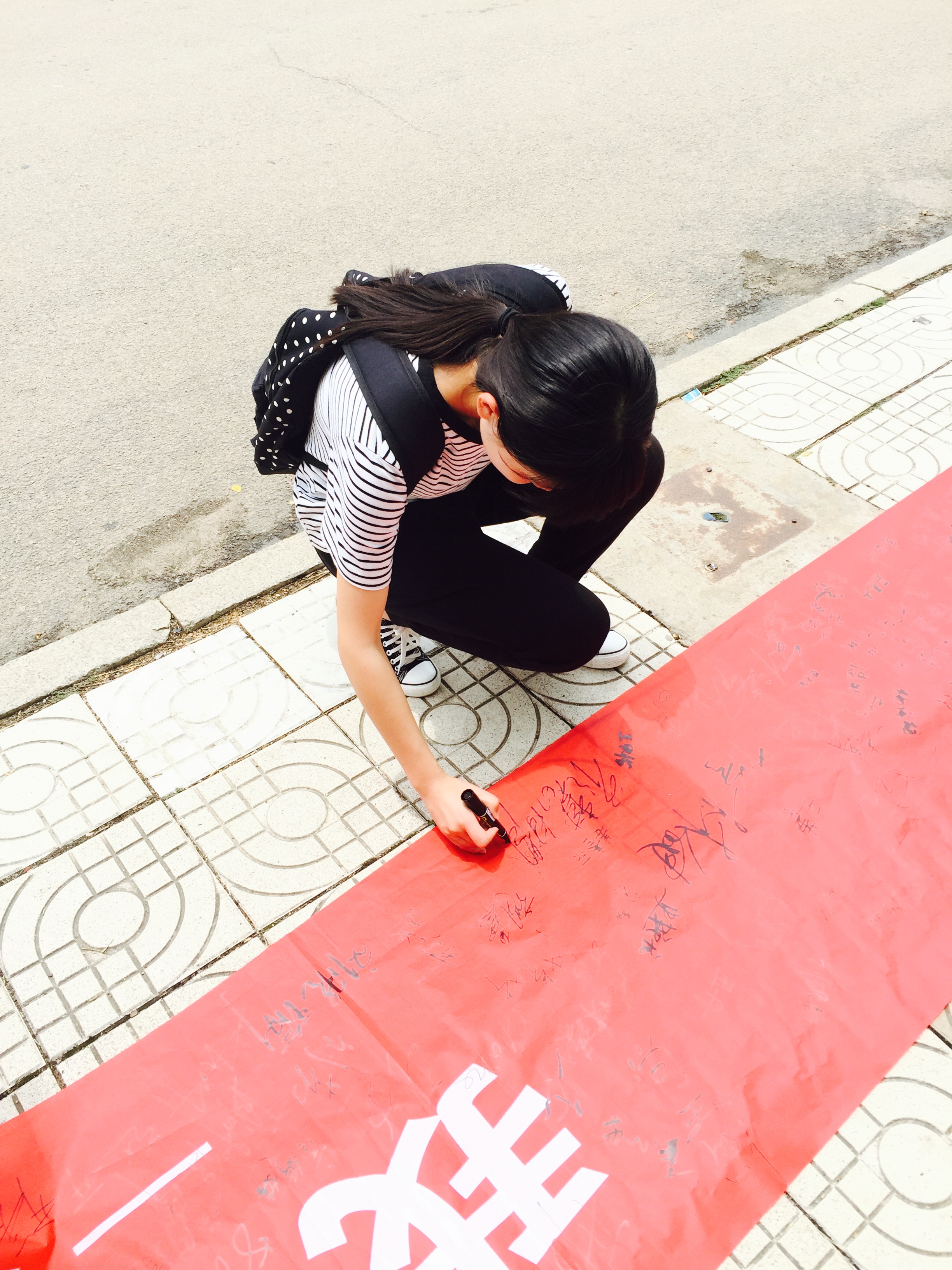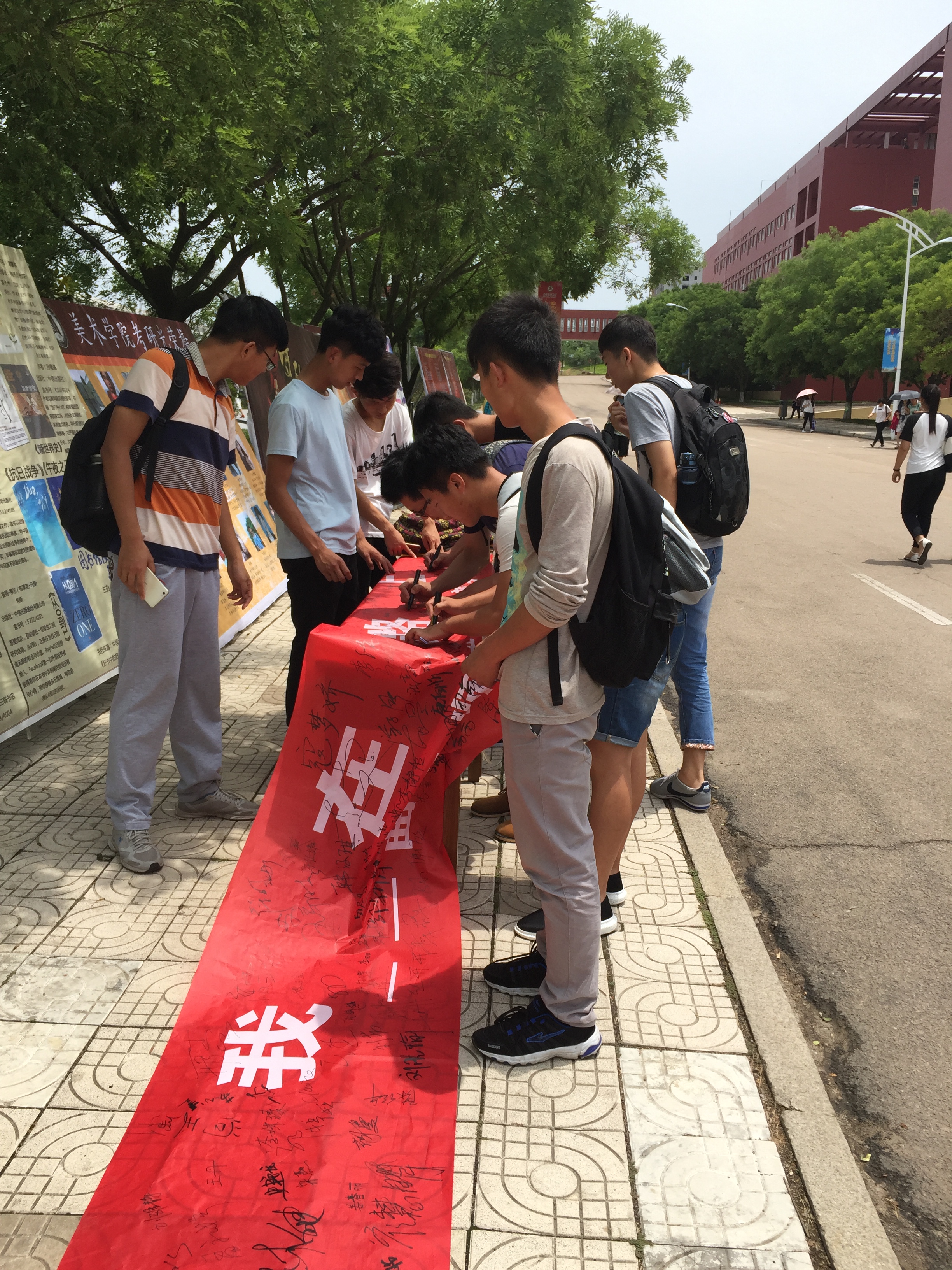 经过前期充足的准备,利用QQ空间、微信等新媒体平台进行线上宣传,积极响应“文明旅游”号召,此次签名活动得到了我校师生的广泛支持。活动现场,海韵学社成员积极引导广大师生承诺“文明旅游,我在路上”。在工作人员的引导下,同学们依次有序地在横幅上签下自己的姓名,承诺在旅游活动中争做文明游客。截止活动当日12时,共有百余名师生参与其中。学社成员在现场为同学们宣传《文明旅游倡议书》相关内容,倡导 “爱旅游、爱生活、爱自然、保护环境”的文明行为,提升文明旅游素质,鼓励大家文明出行。