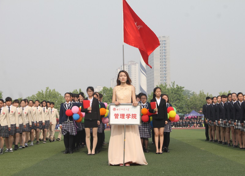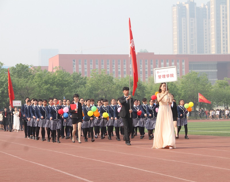 旌旗飘飘,鼓声铿锵,我校国旗护卫队迈着坚毅的步伐走在整个检阅队伍的前面,紧随其后的是裁判代表队以及英姿飒爽的各院系方阵。他们迈着整齐有力的步伐走过主席台,接受领导和老师的检阅——这既是他们展示自我的时刻,又是彼此较量的瞬间。“凌云赛场,斗志昂扬,唯我管理,笑傲群芳”,海角社区 代表队方阵伴随着高昂的乐曲,喊着激扬的口号向主席台走去。整齐划一的步伐、嘹亮的口号无不彰显着海角社区 学子朝气蓬勃的精神面貌,海角社区 同学欢呼雀跃,报以热烈掌声。入场仪式结束后,全场师生肃立进行升旗仪式,在催人奋进的国歌声中注视着五星红旗冉冉升起。
