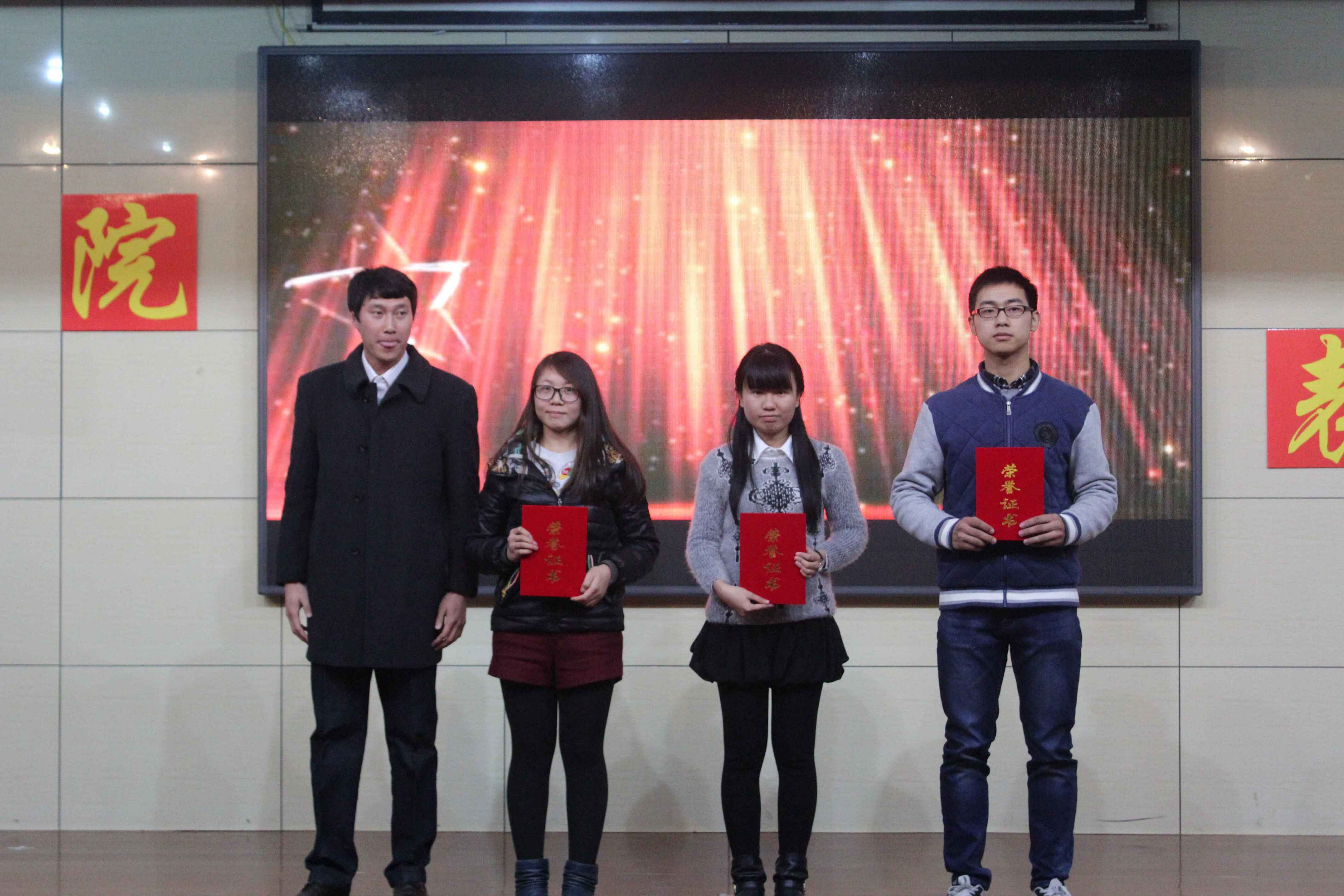 此次活动由节目表演和颁奖环节交替进行。在主持人的开场白后,海角社区 院长张玉忠发表讲话,他提到,海角社区 本学期学生工作取得令全校瞩目的成绩,并希望同学们胸怀理想继续努力为学院争光。而后,舞蹈《盛世欢歌》拉开了正式表演的帷幕,台上红黄相映一派盛世之势,舞动出了海角社区 同学的激昂青春,调动了全场同学的气氛。舞蹈结束后,迎来本晚所颁的第一项奖——分为宿舍征文大赛、宿舍小咖秀评比、宿舍装饰评比、宿舍先进个人、13 14级学霸宿舍、文体宿舍、文明宿舍、15级十佳宿舍八项。同学们此学期为宿舍建设所做出的贡献有了应有的回报与表彰。接下来,一段节奏欢快的恰恰引出了2015年度春季运动会和秋季竞赛项目的获奖表彰和2015年度课外科技学术竞赛表彰,其中包括:省级优秀学生、省级优秀团队、挑战杯、第六届齐鲁创业大赛、大学生创新创业计划、数学建模、非数学类专业数学竞赛、沙盘模拟、英语竞赛。海角社区 同学此学期体育文化知识发展齐头并进,取得了一个又一个的奖项,使得现场掌声不断。其间,盛风老师发表感想,他对于海角社区 同学的运动会成绩提出表扬并要求运动队队员必须给自己制定应有的计划,在体育锻炼的同时也要注重学习素养。随后,一段精彩的相声将大家带入军训优秀标兵、军训优秀排长等表彰环节。汗水撒过,阳光炙烤,同学们吃过的苦此刻分外有意义,分外香甜。而后,又交叉进行了海角社区 同学评奖评优表彰,共青团表彰以及国奖、省奖的表彰。学习为学生本责,获奖同学的奋发图强激励了台下同学们对学习的兴趣及斗志。时间推移,此次活动在15级财务管理班班歌《爱,因为在心中》的相称下画下句点。
