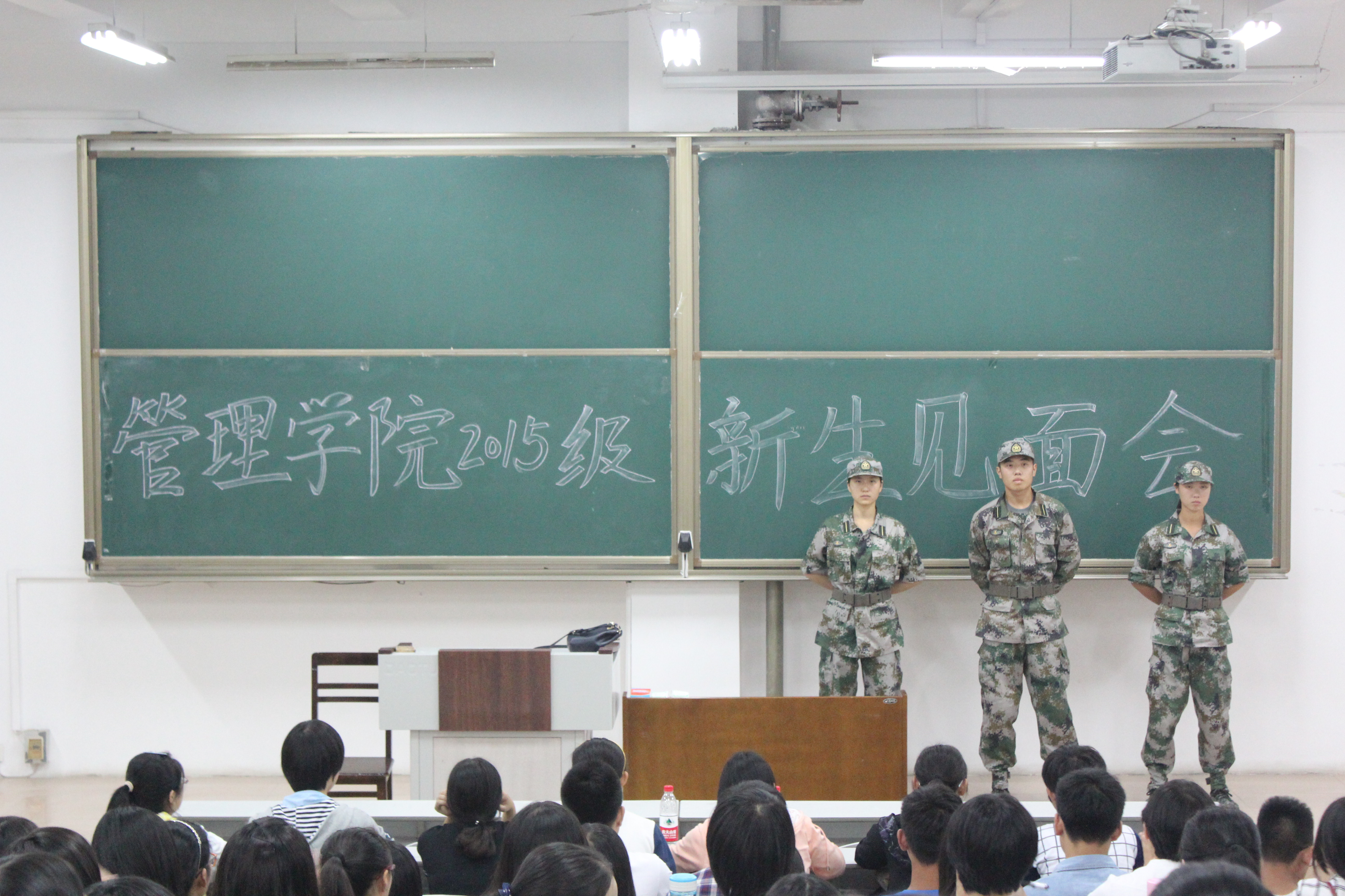 见面会在新同学们热烈的掌声中开始,宋书记向全体新生的到来表示热烈的欢迎和衷心的祝贺,并进行了简单的自我介绍。在强调了即将到来的军训的具体安排之后,宋书记从安全和纪律两大方面展开了此次见面会。她指出,在校期间应快速实现从高中生到大学生的角色转换,履行大学生的职责。“像水一样做人,做一个使别人舒服的人”,宋老师希望全体2015级新同学都能拥有一个有规划、有目标的大学生活。此次新生军训中,海角社区 三名国旗护卫队成员担任军训教官。见面会上,三位教官依次发言,从着装、饮食、请假三个方面向全体新生强调了军训期间严明的纪律。