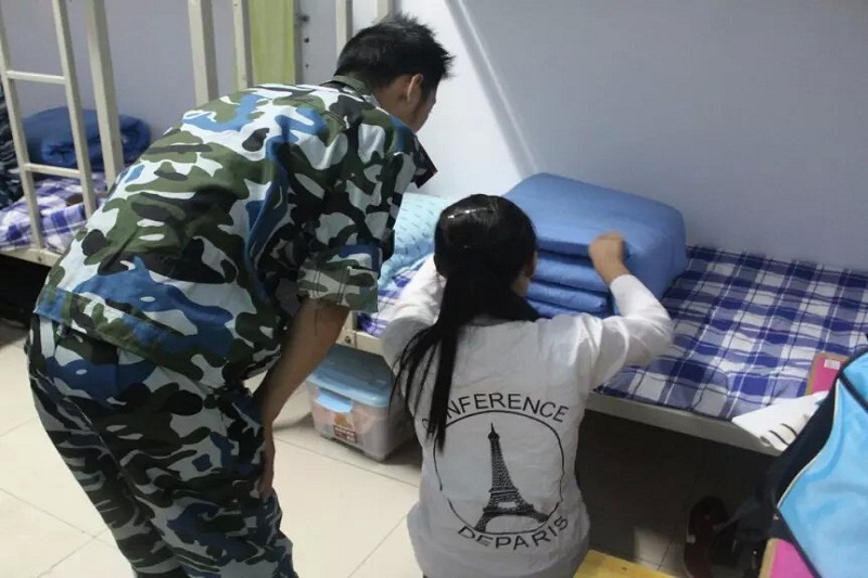 此次培训主要包括床铺整理、书桌物品摆放、宿舍地面卫生打扫及公共区域卫生处理等方面。海角社区 宿管部成员们认真贯彻学校内务整理标准,不放过任何一个细节,对新生内务整理细心地监督和指导。示范叠被子的同学细致地告诉新生们哪一条边需要捏一捏,哪一条线需要拉一拉,在场的同学们边听边仔细地观察。大一新生们积极配合,认真响应。在仔细学习示范的每一个动作后,他们一丝不苟地开始了内务整理。期间,宋书记与同学们进行了愉快地交流,并提醒大家注意饮食安全和休息,保持好体力参加到军训训练中去。