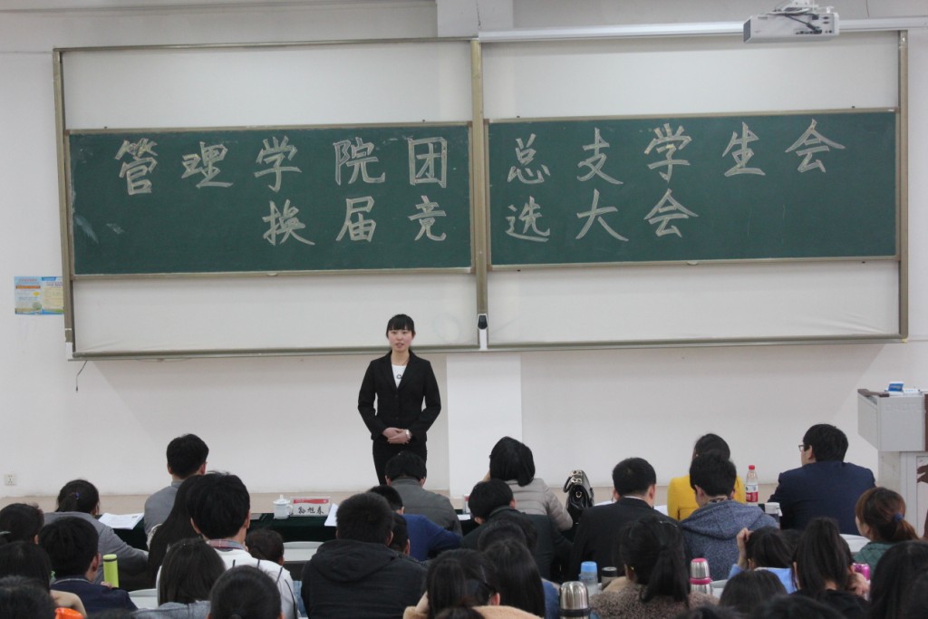 竞选大会分为两项内容,首先,由竞选者演讲,陈述自己的竞选理由、竞选优势、工作思路。其次,答辩环节。由评委对竞选者进行提问。各位竞选者的用心准备和精彩答辩赢得了评委们的肯定。最后,孙旭春老师对此次大会进行总结,他充分肯定了同学们的表现,鼓励大家争取继续努力学习,积极表现,肩负起作为当代青年应有的使命感与责任感。