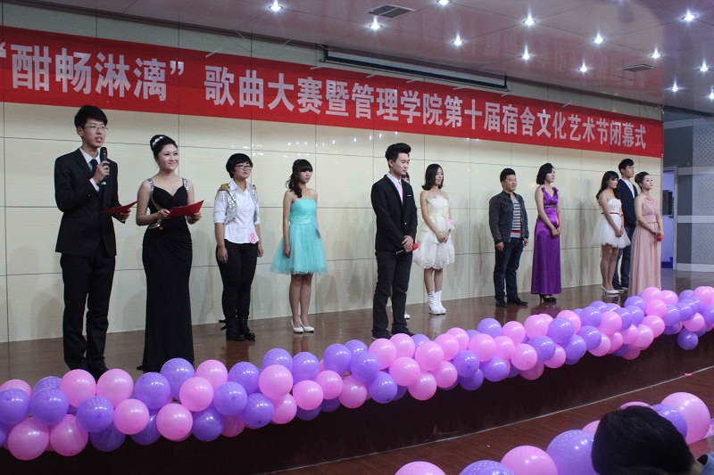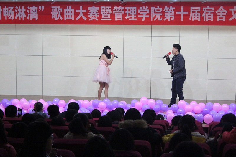 活动随着“啦啦操”的开始拉开帷幕,随后播放的VCR让观众对参赛的队伍有了初步了解,紧接着是参赛选手惊艳亮相。第一环节是两队成员PK时间,两队人员两两合作,按抽签决定的顺序依次登台进行表演。选手们动人的声音,甜美的歌喉将会场的氛围带向高潮。比赛过程中穿插的溜溜球表演则赢得了场下观众的阵阵喝彩,随后两队队长诙谐幽默的合唱更是赚足了观众们的眼球。第二环节则是上一环节胜出的选手以及复活的选手依次上台进行个人才艺展示,选手们各具特色的唱法,深情的演唱使会场的氛围再度达到高潮。观众互动环节“我爱记歌词”真正让管理学子们成为活动狂欢的参与者和创作者。决赛更是激动人心,三位选手出彩的表现,获得了观众的阵阵掌声,由信息科学与工程学院的同学带来的小品让场下观众乐开怀,成为活动的一大亮点。最终由14级营销班闫昊同学凭借出色表现摘得此次比赛的桂冠。