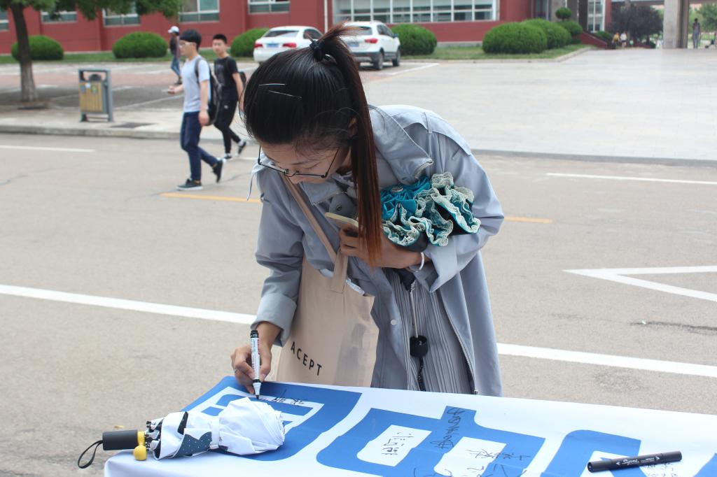 本次签名活动,以“文明背包客,为中国加分”为主题,宣扬了在旅游过程中的正能量,加大了对文明旅游的正面宣传,从而加深了文明旅游在同学们心中的印象,使大家充分发挥大学生的优势和力量,用自己的实际行动影响周边的人。