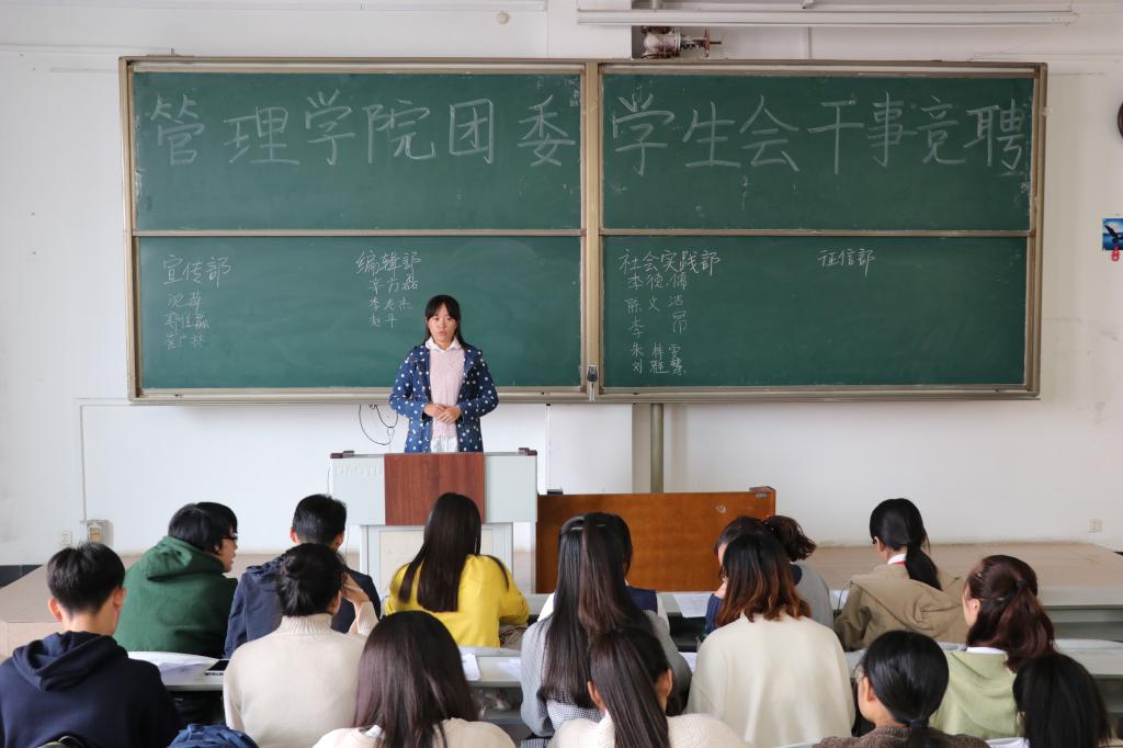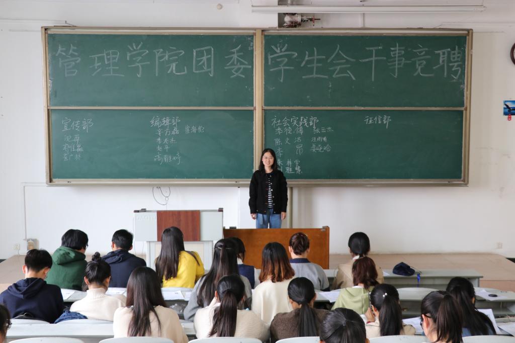 于10月14日举行团委学生会干事竞选大会,团委学生会各部长及副部长出席会议。