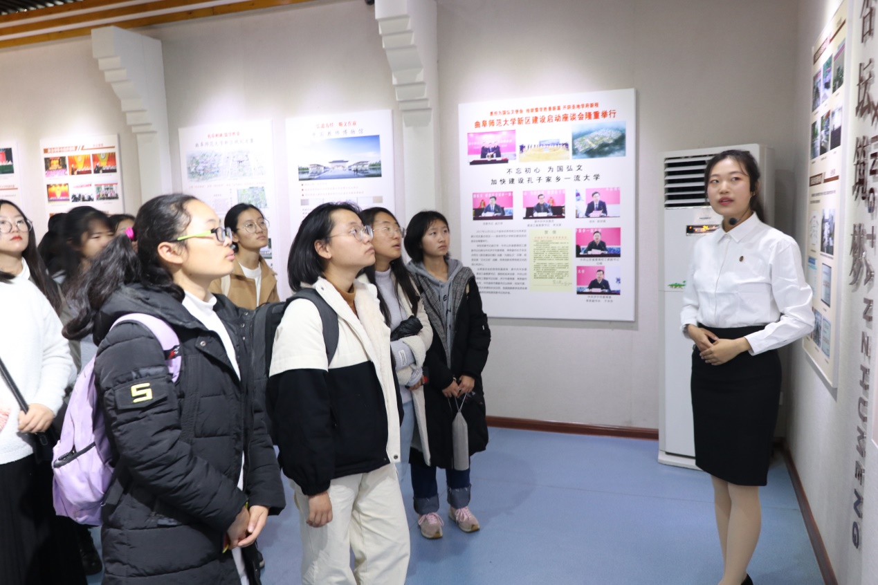 抵达曲阜校区后,海角社区 师生首先自行参观了曲阜校区校园,随后海角社区 师生一行参观了教师博物馆和校史馆。在教师博物馆中,近千件校内外捐赠、海内外征集的文物、史料、档案、实物等教育文化珍品,突出了教师主体、凸显教师文化特色,为学生们奉献了一场承载着历史厚度、人文深度、时代温度的精神盛宴。在校史馆,师生跟随解说员回望曲园六十几载育人之路,了解曲园的发展历程及建校以来的辉煌成就,增强了学生们对学校的认同感与归属感。