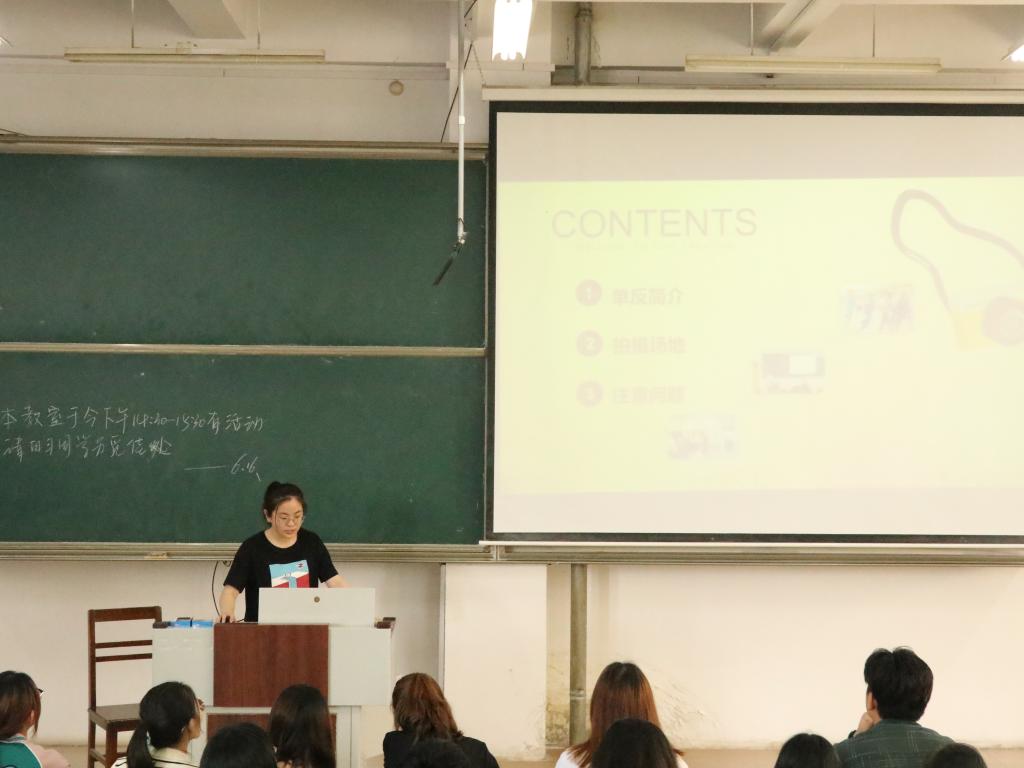 本次会议由宣传部部长孙彦姝和编辑部部长秦宝兰就PS、拍照摄影及新闻写作等方面进行讲解。秦宝兰首先从PS的基础使用方面切入,细致讲述在使用PS时常用的几种工具及其操作方法,以图文结合的方式予以示范和指导;孙彦姝对单反相机的使用、调节及照片选择等方面展开全方位的解说并向各位学生干部讲解了新闻写作的一般格式及方法,具体围绕开头与正文内容的丰富度和准确性讲述,并强调结尾突出活动意义。
