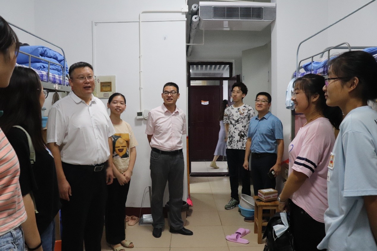 走访过程中,学院领导与新生亲切交流,从多方面了解学生情况,询问他们对新环境的适应情况及入学感受。徐正伟书记强调要尽快转变角色,熟悉新的环境,团结同学,以积极的心态和良好的面貌适应接下来的军训生活和以后的大学校园生活。王宜举院长表示,希望同学们可以尽快适应大学生活,制定目标,做好未来规划。