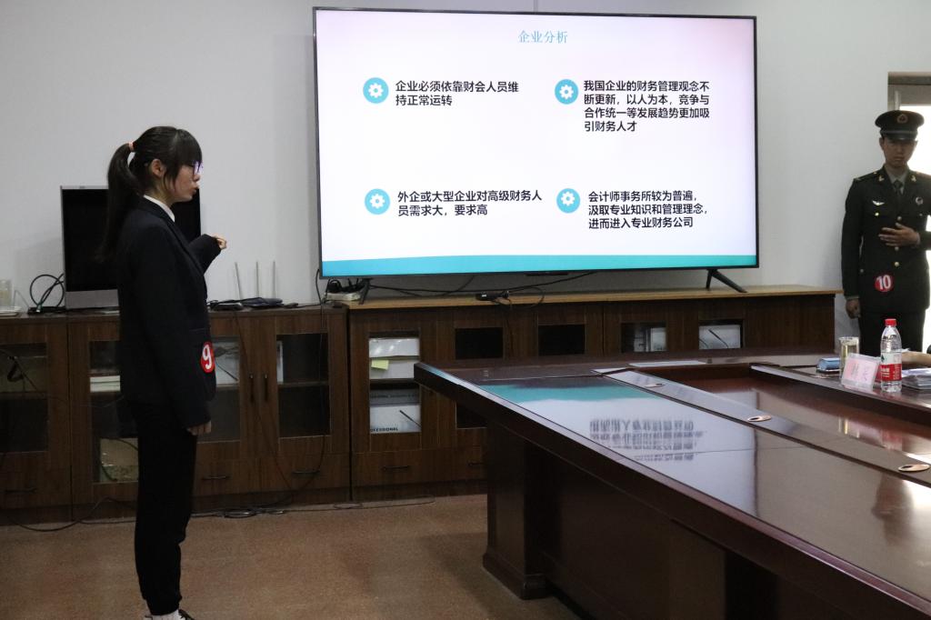 决赛共分为三个环节:“初现风采”、“情景模拟”与“名师指路”。第一环节,参赛选手按照抽签编号依次上台展示VCR并借助PPT进行主题陈述,对自我认知、探索工作世界、规划设计和行动路径等方面进行展示,随后由评委老师进行评分。第二环节,十位晋级选手依次展示以“目标职业典型工作情景”为主题的自编短剧视频,通过阐明工作情景中的矛盾点,生动具体地展现出目标职业的特点,展示自己的职业价值。第三环节,由选手对自己的职业进行2分钟的职业描述。选手们从容不迫,自信大方地在评委前畅谈对目标职业的理解,专注坚毅的眼神中透露着他们对未来的憧憬与向往。