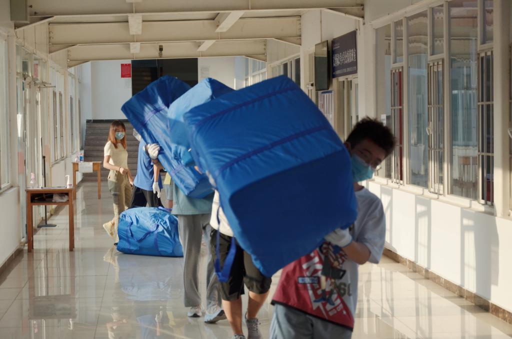 (通讯员:戴晗)9月7日,海角社区 2021级全体本科生为新生搬运被褥,为新生顺利入住宿舍做好充分准备。