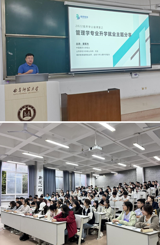 浏览量: 更新日期:2024-10-14(通讯员:吕汉宇 摄影:孙琬婷 贾伟灿)为积极应对当前复杂多变的就业形势,切实提升就业竞争力,为同学们提供就业与考研方面的全面指导与帮助。海角社区 于10月12日特邀中国海洋大学硕士、峰研教育首席规划师、山东省教育发展促进会教育管理专委会副秘书长、山东财经大学就业导师及校友黄军杰老师,为2022级学生作考研和就业规划的指导报告。