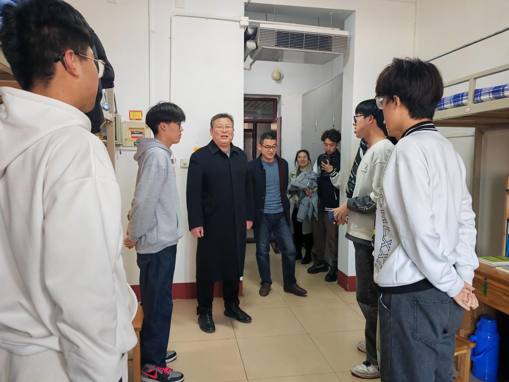 学院领导走访各学生宿舍,认真检查了学生宿舍的卫生环境和各项设备安全情况。走访期间,领导们与学生进行亲切的沟通,认真听取同学们的需求和建议,关心学生日常学习生活情况。最后,徐正伟书记叮嘱同学们注意宿舍用电安全,勉励同学们要珍惜美好的青春时光,扎实学好专业知识,努力提高自身综合素养,争做有理想有本领有担当的新时代新青年。