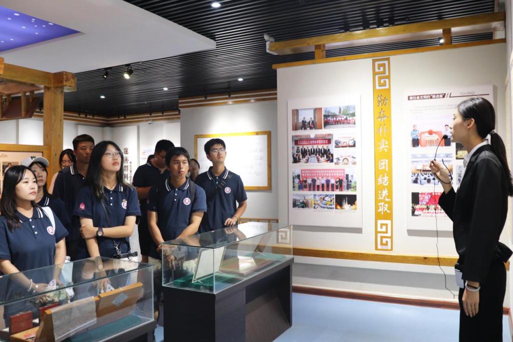 图为新生聆听校史馆讲解