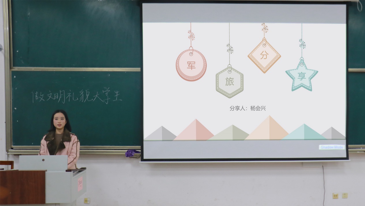 讲座围绕体检及政审、新兵连、下连工作和部队生活四个方面展开。首先,杨会兴详细讲解了体检及政审的相关流程与注意事项,着重强调了体检过程中的关键流程,帮助同学们更好地了解了征兵要求;随后,她结合自己的军旅生涯,从新兵连入手,依次对下连工作、部队生活做了详细的介绍,通过自己的经历激励同学们积极参军入伍,实现自我价值;最后,杨会兴针对同学们的有关问题与疑问,进行了细致解答。