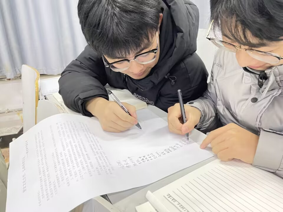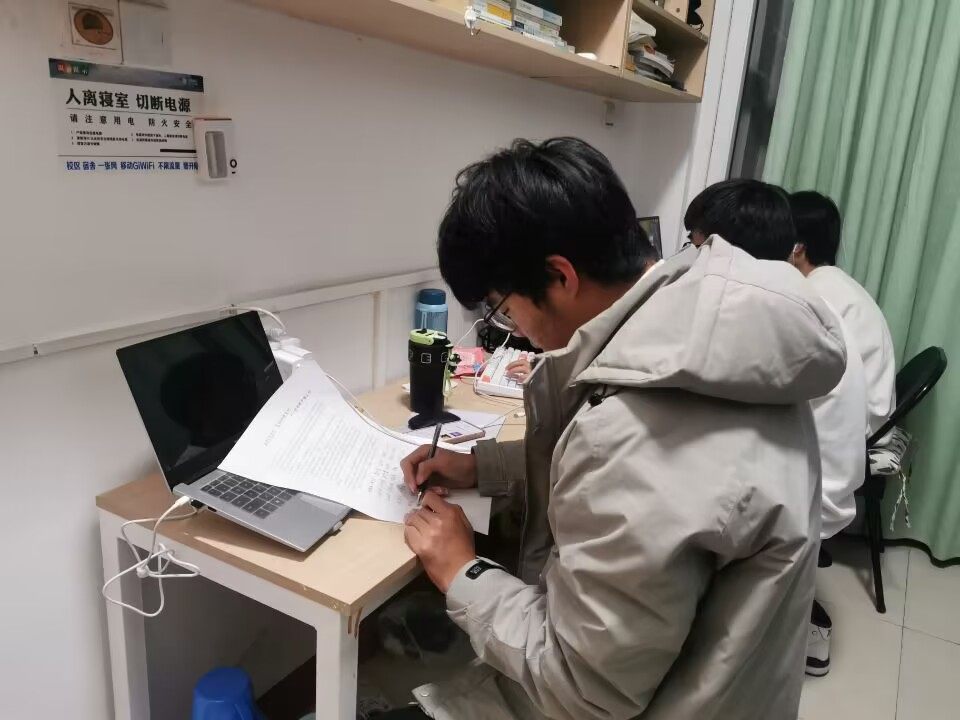 图为管院学子在宿舍认真阅读倡议书并签字