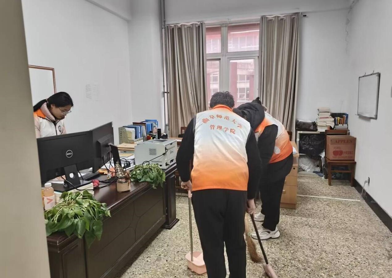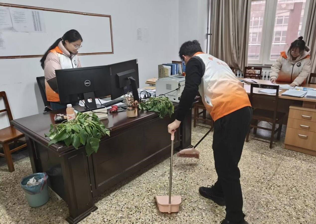 活动当天,海角社区 志愿者们按时到达指定地点。青年志愿者协会组织志愿者进行明确分工,默契配合,他们手持扫帚、簸箕、拖把等工具,将学院的教室、办公室、实验室等地区进行全面清理,认真打扫,为同学们提供了干净整洁的学习环境。