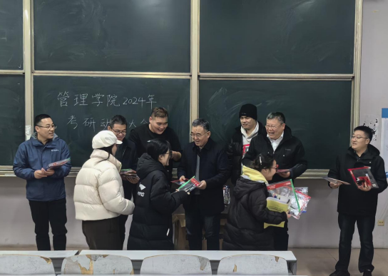 动员会上,王院长发表了振奋人心的动员讲话,为考研学子们加油鼓劲。他表示,考研是提升自我、实现梦想的重要途径,希望同学们能够珍惜机会,坚定信心,以积极的态度和扎实的准备迎接挑战,并用自身的经历鼓励考研学子坚定信念、勇往直前,在考试中展现学校的优良学风和拼搏精神;随后,学院领导为学生发放丰厚的考研大礼包,展现了学院对学子们的关爱与期望,为同学们的备考之路提供全方位的支持。