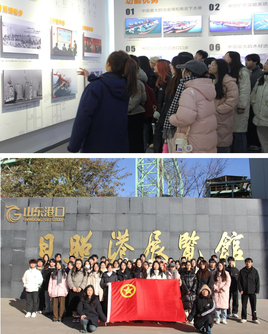 此次实践研学活动中,师生先后前往日照港展览馆及日照港口职工赋能基地进行参观学习。活动伊始,“青马工程”培训班成员在讲解人员的带领下参观了“山东港口融合主题展厅”、“日照港建港40周年专题展厅”、“山东港口年轻干部廉洁从业教育展厅”、“山东港口警示教育馆”四个展厅,在参观过程中了解日照港的发展历史,体悟港口人民的奋斗精神和廉洁精神;随后,“青马工程”培训班成员前往日照港口职工赋能基地,近距离了解港口运作流程、山东港口一体化改革发展历程以及日照港的港区规划和生产经营等方面的情况,并亲身体验相关操作。