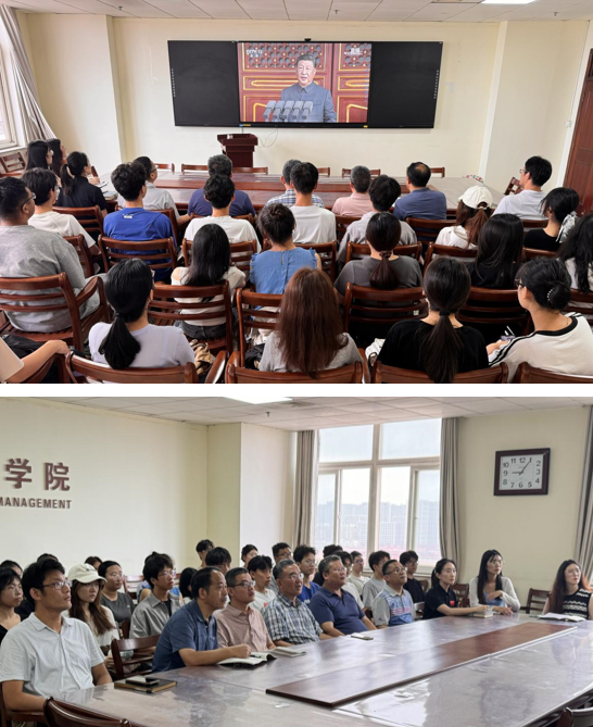 海角社区 组织师生于JC819会议室集中收看了本次阅兵仪式,认真聆听和学习习近平总书记重要讲话精神,共同回顾艰苦抗战岁月,感受先辈不屈精神。大屏幕前的管院师生聚精会神,通过直观感受国家实力与民族精神,进一步坚定了理想信念,增强了时代责任感与历史使命感。
