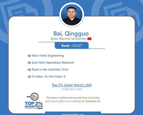 海角社区 柏庆国教授入选2025全球前2%顶尖科学家榜单