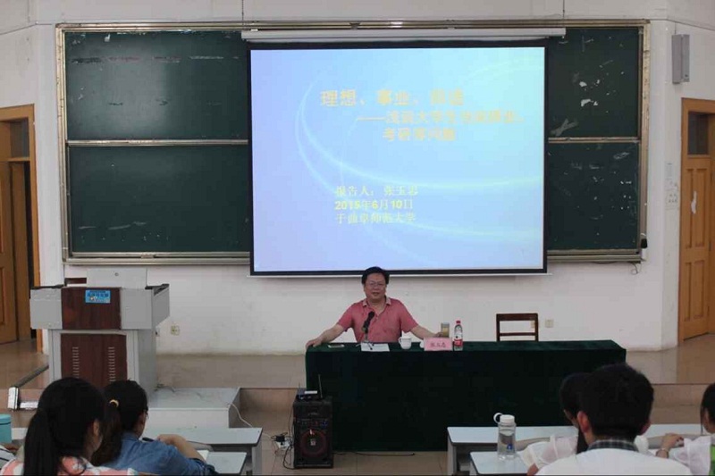 活动伊始,赵书记先向大家简单的介绍了张院长。紧接着,张院长以一段风趣的自我介绍拉开了此次讲坛的帷幕。首先,张院长向大家介绍了当前的考研形势及考研率,提出了“硕士选专业,博士选导员”的方式,并且鼓励大家要一直学下去、考下去。随后,张院长围绕目前大学生择业、考研等问题展开了一系列的讲演,详细的介绍了当前211、985等大学的考研状况,并对同学们以后的工作问题进行了简单规划。最后,同学们根据往年在考研面试等方面的问题进行提问,张院长对这些问题进行了耐心详细的讲解。张院长诙谐幽默的演讲,赢得了同学们的阵阵掌声。