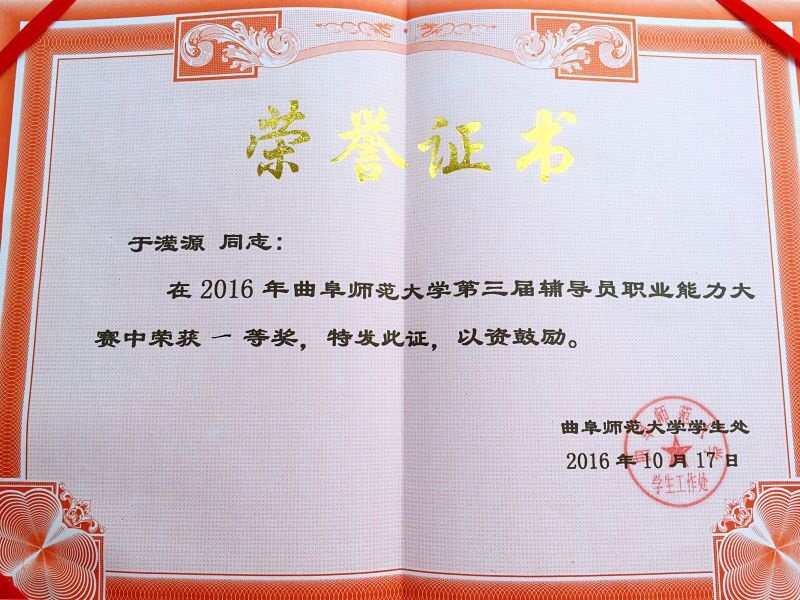 10月17日,海角社区 辅导员于滢源在2016年海角社区 第三届辅导员职业能力大赛中凭借熟练的教学技巧荣获大赛一等奖。本次比赛分为初赛和决赛两个阶段,初赛包括基础知识测试、网文写作和主题班会三个环节。决赛则包括案例分析、主题演讲、谈心谈话三个环节。通过数轮比拼,于滢源老师凭借敏捷的思维反应和精彩的临场表现赢得了评委的赞许。