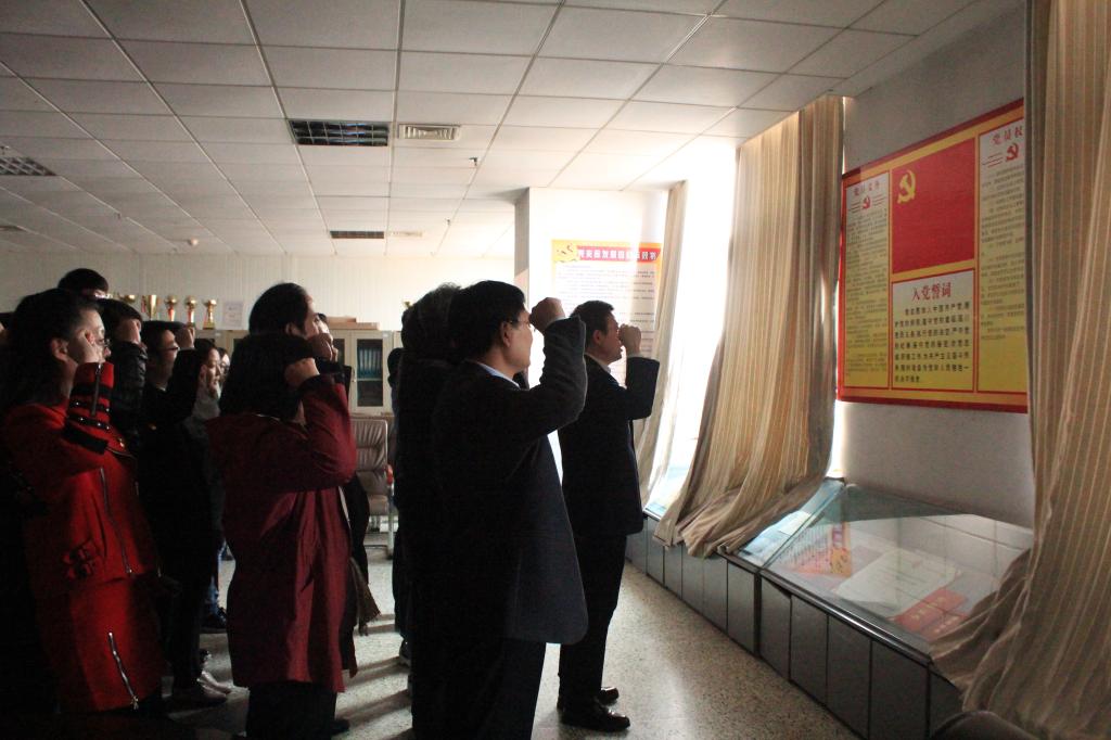然后,在学院党委书记王刚的带领下,全体党员面向党旗集体宣誓,重温入党誓词。“我志愿加入中国共产党,拥护党的纲领,遵守党的章程……”宣誓声音铿锵有力,掷地有声,久久回荡在每位党员的耳畔,仿佛使他们又回到了入党那一刻,勿忘初心,紧跟党走。