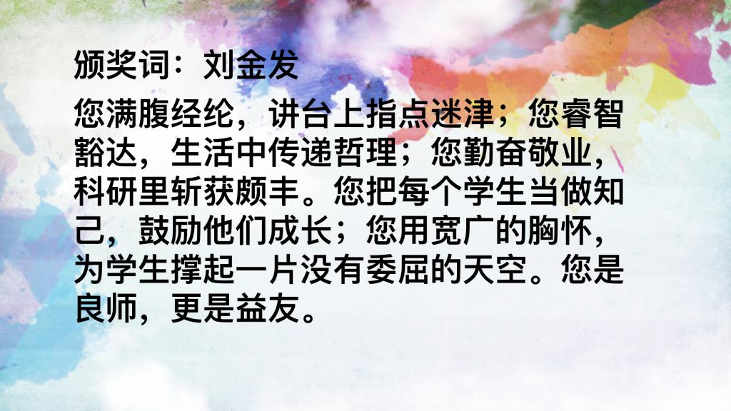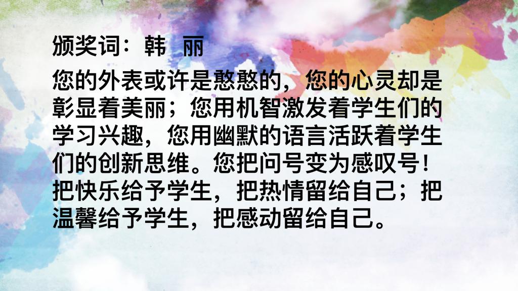大会为海角社区 2017年度优秀教师刘金发、2017年度师德先进个人邵伟,2017年度最美教师韩丽,海角社区 首届最美教师巩天雷、王成飞、郭斌等六名老师颁奖。黑发积霜织日月,粉笔无言写春秋。此次对优秀教师的表彰不仅是对于获奖教师平时工作和人格品德的肯定,同时对教育学生们感恩老师,弘扬先进榜样,引领师德师风,发现教师的真善美以及增强海角社区 “儒雅学院”建设等方面也具有积极意义。