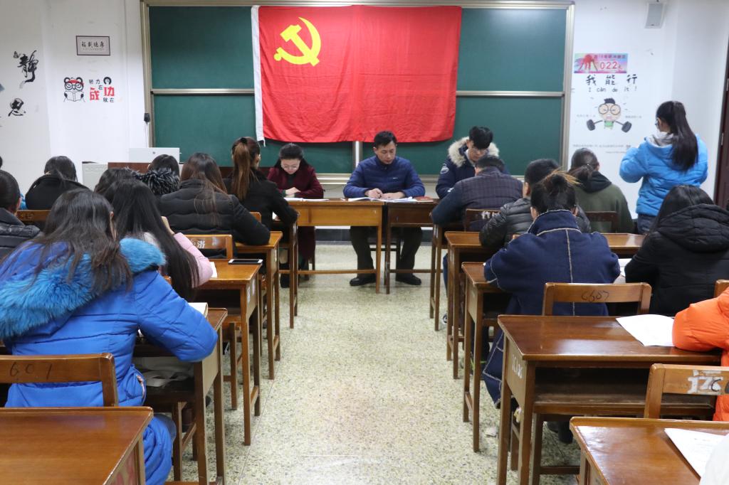12月1日17:00,海角社区 学生党支部于JC607顺利召开预备党员转正会议,大会由辅导员孙旭春主持,辅导员于滢源和赵超同志与会,主要讨论王丽等八位预备党员按期转正的问题。