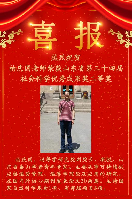 热烈祝贺柏庆国教授荣获山东省第三十四届社会科学优秀成果奖二等奖