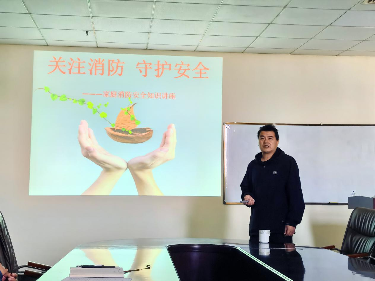 王长军以“关注消防 守护安全”为主题,从四个方面开展家庭消防安全知识讲座。一是通过列举典型火灾案例,分析引发火灾及人员伤亡的主要原因;二是正确预判火情,量力而行,利用身边物品扑灭初发火情,及时报警;三是对灭火器、消防栓的使用方式和注意事项进行科普,学习火灾逃生方式;四是学习《中华人民共和国消防法》,坚决遵守消防法规,要有火灾预防意识,防消结合,营造安全生活环境。