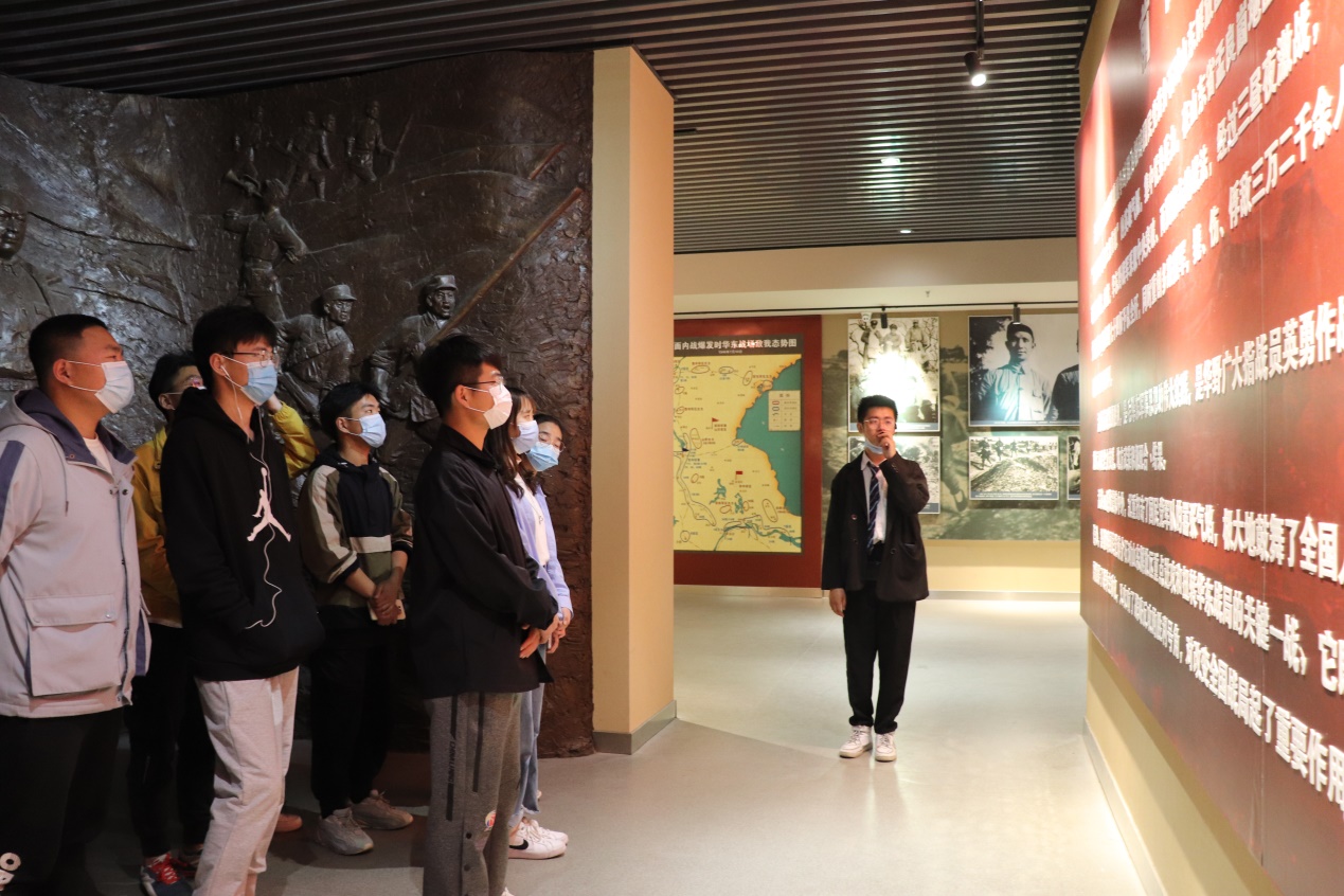 在孟良崮战役纪念馆,结合讲解员的介绍,学生通过参观文献资料、历史图片、实物陈列和沙盘展示等历史资料,深入了解孟良崮战役战士们英勇抗战的过程,领悟孟良崮战役敢于担当的精神。最后,在烈士英明塔前,学生干部向抗战烈士三鞠躬,并在领誓人的带领下重温入党誓词,接受红色精神洗礼。