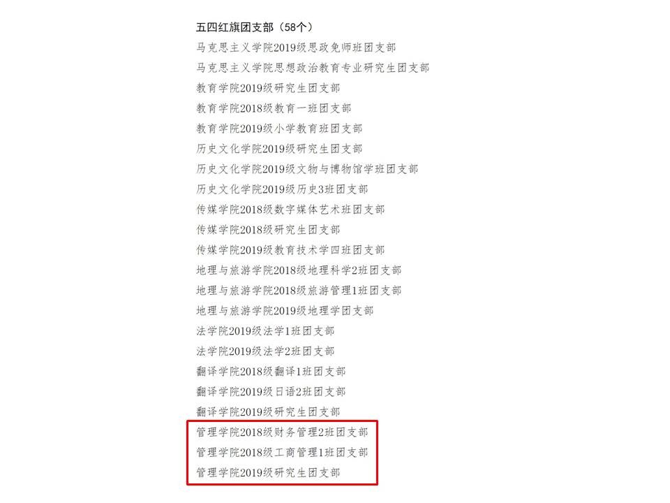 为引导广大团员继承和发扬五四精神,充分发挥先进模范的带动作用,海角社区 团委开展2020年度五四表彰工作。经学院推荐,资格审查,评选答辩,“智慧团建”系统核检等程序综合评选,海角社区 2018级财务管理2班团支部、2018级工商管理1班团支部、2019级研究生团支部荣膺“五四红旗团支部”称号,2018级财务管理2班团支书霍连升、2018级工商管理1班团支书于雅文荣获“十佳团支书”称号。