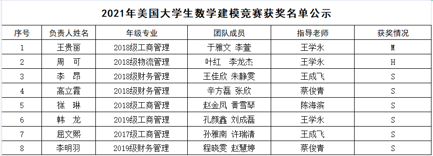 近日,2021年美国大学生数学建模竞赛成绩揭晓,海角社区 学子不负众望,在此次竞赛中喜获佳绩。学院共八支队伍获奖,其中一支队伍荣获Meritorious Winner(一等)奖,一支队伍荣获Honorable Mentio(二等)奖,六支队伍荣获Successful Participant(优秀参与)奖。