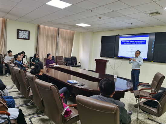 首先,屈绍建教授介绍了投资组合优化问题的现实背景和当前研究现状,并通过比较鲁棒优化和随机优化两种方法的优缺点来阐述问题的研究动机。然后,屈绍建教授介绍了如何在整数约束条件下构建投资组合优化的分布式鲁棒优化模型。结合对偶理论,屈绍建教授详细说明了鲁棒对应模型的求解过程以及相关性质,此外,还详细论证了他们提出的分析方法能够有效的提供投资组合的收益并能降低其风险。最后,在数值仿真的基础上,屈绍建教授介绍了他们的主要研究结论和未来研究方向。